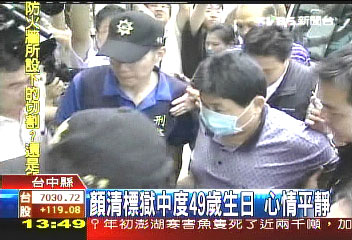 中新網(wǎng)8月25日電 臺灣“立委”顏清標(biāo)入獄第5天,今天剛好是他的49歲生日。有“立委”朋友前往探望,為他慶祝生日。