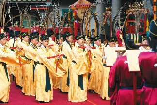 中新網(wǎng)9月28日電 臺(tái)北市孔廟過(guò)去都是用六佾舞祭孔,今年因孔廟整修完畢,加上馬英九將以貴賓身份出席孔廟祭典,特別擴(kuò)大規(guī)模以天子之禮的八佾舞呈獻(xiàn)上天,對(duì)孔子表達(dá)最崇高的敬意。