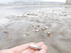 臺北縣一處河岸沙洲帶,出現200多顆9厘米制式子彈;警方懷疑子彈從臺軍方流出,也不排除黑道走私取得。(圖:臺灣《中國時報》)
