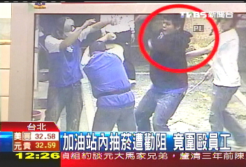 中新網(wǎng)10月20日電 據(jù)臺灣TVBS報道,臺北市文化大學(xué)附近一家加油站,有一群飚車族到加油站加油,其中一名男子抽煙被勸阻,覺得沒面子,竟然和同伴圍毆加油站員工,監(jiān)視器也拍下整個過程。