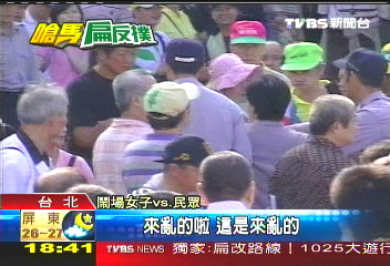 報(bào)道說,鬧場女子反對游行中所謂的“嗆中”訴求,高聲嗆聲說:“我們自己人斗自己人,都是自己人,你們還罵!你要抓誰?”鬧場小姐被拉到路障旁,依然照嗆,現(xiàn)場亂成一團(tuán)。