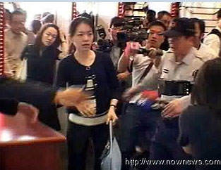 陳幸妤發(fā)飆大吼,指責媒體攝影機打到頭。(臺灣TVBS)