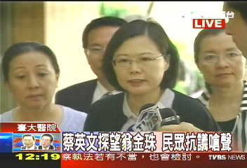中新網(wǎng)11月7日電 綜合臺(tái)灣TVBS電視臺(tái)報(bào)道,民進(jìn)黨主席蔡英文今天上午到臺(tái)大醫(yī)院探視民進(jìn)黨“立委”翁金珠時(shí),遭到民眾抗議嗆聲,抗議民眾大罵蔡英文“無(wú)恥”,蔡英文尷尬微笑以對(duì)。