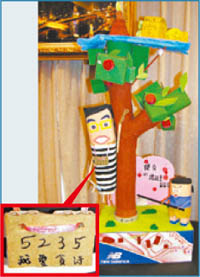 中新網(wǎng)1月6日電 高雄應(yīng)用科技大學(xué)舉辦創(chuàng)意環(huán)保童話公仔競賽,原訴求童話可愛風(fēng)格,但一組嘲諷陳水扁弊案的《杰克與櫻桃豆》創(chuàng)作,讓阿扁穿上編號“5235(諧音‘我愛貪污’”囚衣,意外拿下銅牌。