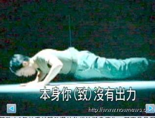 中新網(wǎng)1月21日電 據(jù)臺(tái)灣“今日新聞”報(bào)道,陳水扁之子陳致中9年前為父親助選拍的伏地挺身(俯臥撐)廣告,其實(shí)是吊鋼絲完成的,當(dāng)年幫陳致中吊鋼絲的師傅直接點(diǎn)明陳致中雙手根本沒(méi)有力,才要靠吊鋼絲來(lái)輔助。