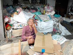 中新網(wǎng)3月19日電 據(jù)臺(tái)灣《中國(guó)時(shí)報(bào)》報(bào)道,屏東潮州一位八十歲老婦人,四年前丈夫罹病過世,她搬到小兒子家同住,但怕狗的她卻以屋內(nèi)有狗為由,堅(jiān)持不進(jìn)家門,自己則利用紙箱、尼龍袋就在門前騎樓隔了一個(gè)小空間當(dāng)作棲身處,不管天冷、天熱始終不離開,鄰居路過時(shí)都不禁投以好奇的眼光。