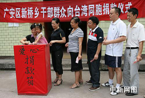 中新網(wǎng)成都8月18日電(廖小兵 李平)18日,在一代偉人鄧小平的家鄉(xiāng)四川廣安市廣安區(qū),干部群眾積極響應區(qū)“紅十字會”發(fā)出的為受災臺灣同胞緊急募捐的倡議,倡議發(fā)出不到一天,廣安區(qū)紅十字會就收到干部群眾和社會各界捐款20余萬元。