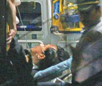 三名法警趨前檢視阿扁的身體,有民眾鼓噪“叫法警拿槍給扁自殺算了”;法警讓扁躺在被告席長(zhǎng)凳上,并緊急聯(lián)系救護(hù)車。