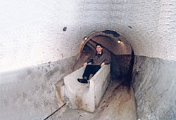 據(jù)了解,這兩條密道往東可達(dá)北安公園,全長(zhǎng)七十八米,沿在線方裝有電燈照明設(shè)備,共有四十五個(gè)燈座,八十六個(gè)階梯;往西可抵圓山聯(lián)誼會(huì)劍潭公園,全長(zhǎng)八十米,七十五個(gè)階梯,內(nèi)部蜿蜒曲折,一直到出口處可以見到兩扇長(zhǎng)期深鎖的金屬門,打開后還會(huì)見到兩座高約五米的石墻遮蔽,外界根本看不出這是坑道出口。