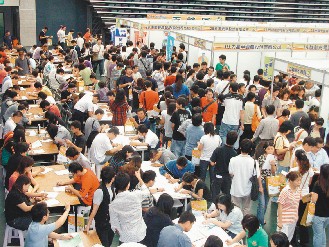 中新網(wǎng)11月10日電 桃竹苗區(qū)就業(yè)博覽會(huì)9日在苗栗縣巨蛋體育館舉行,34家廠商提供1100個(gè)工作機(jī)會(huì),涌入近4000謀職人潮,不少失業(yè)、待業(yè)青年找工作,共媒合997人次。