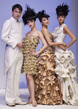 中新網(wǎng)11月8日電 據(jù)臺灣《中國時報》報道,臺灣服裝設(shè)計師潘宜良的時裝作品七日在北京時尚周展示,臺灣名模黃志瑋(由左至右)、蔡淑臻、陳思璇與林嘉綺跨海登臺走秀,展現(xiàn)臺灣在時尚產(chǎn)業(yè)中的魅力。