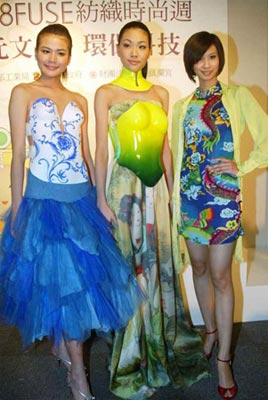 臺(tái)灣民間信仰媽祖,現(xiàn)在有了美麗的代言人。臺(tái)灣官方主辦的“FUSE紡織時(shí)尚周”活動(dòng)結(jié)合“大甲媽祖國(guó)際觀光節(jié)”,從全省兩百位十六至二十四歲的報(bào)名者中選出前三名,成為臺(tái)灣首屆媽祖代言人,二十五日公開亮相,圖為前三名王婷儀(左起)、葉雅馨、陳紫嫻,看似夸張的馬甲,是設(shè)計(jì)師以媽祖護(hù)佑臺(tái)灣有如穿著盔甲為靈感,而鎮(zhèn)瀾宮的澡井、八仙彩甚至是媽祖供桌上的青花瓷花瓶,都幻化做時(shí)尚媽祖的彩衣。臺(tái)灣《中國(guó)時(shí)報(bào)》圖 陳信翰 攝