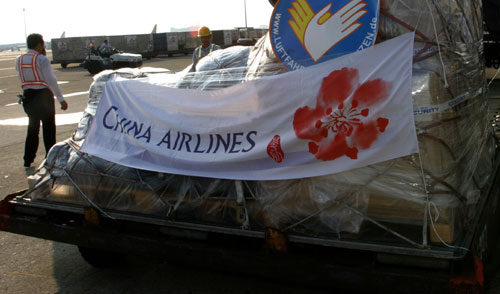 德國民間救援組織“航空無國界協(xié)會”捐贈1噸的毛毯、睡袋及帳蓬等人道救援物資,也于今天清晨6時40分運抵桃園機場。另外,加拿大政府將捐贈5萬加幣,并捐助20萬枚氯錠,供災區(qū)重建。