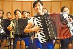 臺灣小學(xué)生要上才藝班,朝鮮小學(xué)生則要上少年宮,學(xué)校只上半天課,下午到少年宮學(xué)習(xí)書法、刺繡、吉他、手風(fēng)琴、跆拳道等十八般武藝,并開放讓游客參觀。這些小朋友課外活動還包括表演大型體操秀《阿里郎》,演出并無酬勞,全屬個人榮譽。