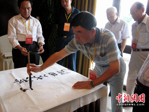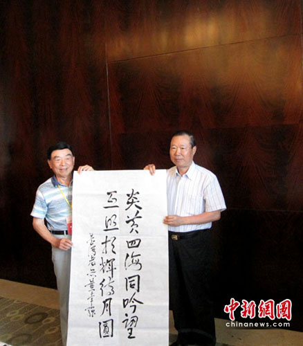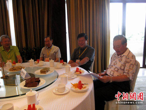 來自臺(tái)灣原海軍副總司令官沈方枰中將與大陸的海軍東海艦隊(duì)原司令員趙國(guó)鈞中將同為一組打球的兄弟,看到記者拍照,沈方枰中將對(duì)記者表示“來,給我們兄弟來一張!