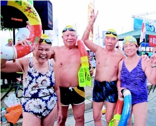 七十七歲的向延發(fā)也和太太同行,一起完成泳渡美夢(mèng),他說(shuō)這次來(lái)臺(tái)旅游重點(diǎn)就是日月潭泳渡,接下來(lái)要和廣州冬泳會(huì)的“玩水一族”老友,一起游臺(tái)中、花蓮、臺(tái)南。