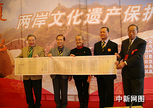 中新網(wǎng)11月9日電 (吉翔)由中國華夏文化遺產(chǎn)基金會主辦的首屆海峽兩岸文化遺產(chǎn)保護論壇9日在北京開幕,多名國共高級將領(lǐng)后代發(fā)表了兩岸文化遺產(chǎn)保護的共同宣言,以召開展兩岸民間文化遺產(chǎn)保護領(lǐng)域的實體性合作。
