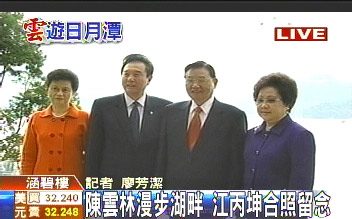 陳云林今天清晨6點多,先是邀約江丙坤共進(jìn)早餐,后來又漫步在日月潭湖畔,欣賞美麗的風(fēng)光。