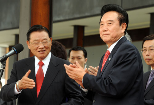 在歡送會上,陳云林和海峽交流基金會董事長江丙坤離情依依。江丙坤表示,“鄭重地向陳會長說一聲再見,后會有期!标愒屏忠矔痴勥^去幾天來的行程,對于臺灣人民,他表達(dá)無限感激,并同時向受傷警察致意,他也期盼兩岸的道路,能夠越走越寬廣。