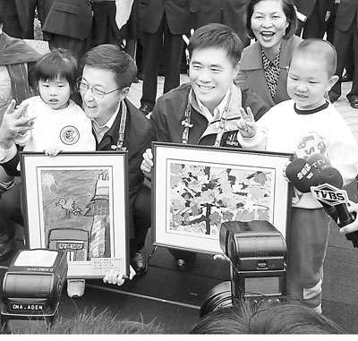 由于沒(méi)有安排接駁車,記者打車趕往下一站——北投垃圾焚化處理廠。由于此項(xiàng)參觀也不對(duì)外,記者又趕到附近的一家幼兒園等候。在臺(tái)北市長(zhǎng)郝龍斌的陪同下,韓正與此間的小朋友見(jiàn)面,小朋友為兩位市長(zhǎng)唱歌跳舞,又把自己畫(huà)的畫(huà)送給市長(zhǎng),韓正把帶來(lái)的上海世博會(huì)吉祥物海寶送給小朋友,又和他們合影留念,小朋友個(gè)個(gè)樂(lè)得手舞足蹈。