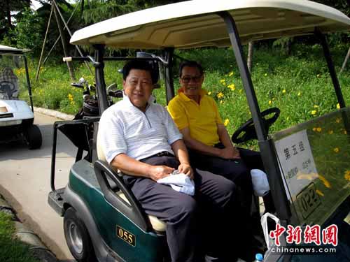 來(lái)自臺(tái)灣原海軍副總司令官沈方枰中將與大陸的海軍東海艦隊(duì)原司令員趙國(guó)鈞中將同為一組打球的兄弟,看到記者拍照,沈方枰中將對(duì)記者表示“來(lái),給我們兄弟來(lái)一張!(完)