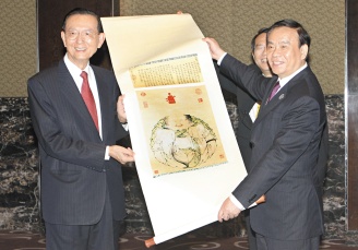 中新網6月12日電 據臺灣《聯合報》報道,浙江省長呂祖善率領的浙江省代表團十一日到新竹科學園區(qū)、工研院、臺積電參訪,中午與晚間分與臺灣呂氏宗親及中部三縣市長、“立委”們餐敘。“立委”呂學樟以世界呂氏宗親會理事長身份款待呂祖善一行,呂祖善回贈“呂祖謙全集”共十六冊,他說從未遇過這么盛大的懇親會場面,非常溫馨。