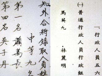 此次展出不僅有馬英九等人的榜單,還有1933年的超級(jí)古老榜單。這些榜單已有數(shù)十年歷史,在那個(gè)電腦不普及、甚至沒有電腦的年代,都是手寫,頗具古意。