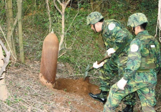 小金門烈?guī)Z上庫吳姓鄉(xiāng)民,昨天在南塘發(fā)現(xiàn)一枚未爆彈,位在南塘下坡路段路旁10余米的樹叢里,彈體上半部裸露在外,頂端有引信裝置,安全插鞘還在。金防部烈?guī)Z指揮部通報(bào)聯(lián)勤未爆彈處理小組,渡海來小金門順利移除。