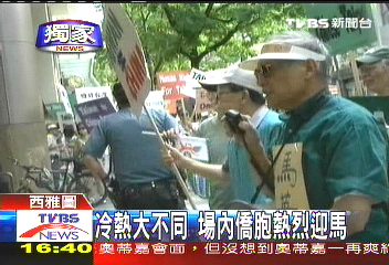 另?yè)?jù)臺(tái)灣TVBS4日消息,為了嗆馬英九,挺綠民眾早早就占據(jù)了飯店廣場(chǎng),等著馬英九“自己送上門”。早就接獲“嗆聲情報(bào)”的馬英九為了避免沖突,選擇走側(cè)門。