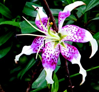 艷紅百合花如其名,在原生百合花中最艷麗動(dòng)人,反卷后翻的白底花瓣帶著紅色斑點(diǎn),花蕊往外伸出,遠(yuǎn)望不像臺(tái)灣原生百合花,是日本人最喜歡的鹿子百合變種,有“最美麗的東亞百合”之稱。
