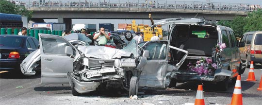 林景昭一家三口與親戚四人中,太太陳明雪與親戚施王姿人罹難,他和女兒分受輕重傷。沈志峰夫婦最幸運(yùn),轎車被撞翻,兩人從車?yán)锱莱鰜恚涟l(fā)無傷。