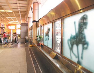 還有府中站“空間之詩”,造型特殊的長條型LED字幕機,民眾可用簡訊上傳詩文發(fā)表,但似乎使用率也不高,古亭站“邂逅”,造價近500萬元,12件臉譜創(chuàng)作,因高度過高、不易清理,已經(jīng)看得出“歲月”留下的痕跡,中正紀念堂往金華街通道“非想、想飛”,造價320萬元,原有的攝影作品已不復見,只剩黑漆漆的長條框框。