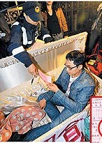 朱政騏強(qiáng)調(diào),“臺灣人民若不起來反對牛肉進(jìn)口,未來每年都會有人因此躺進(jìn)棺材。”前“立委”羅文嘉昨晚也前往關(guān)切,羅還開玩笑說:“應(yīng)該換大一點的棺材,這樣聲援同學(xué)就可以一起躺進(jìn)去!