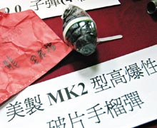 落網(wǎng)的30歲嫌犯李坤龍供稱,這批軍火是他向別人買二手車時(shí),原車主留下來的,對于李嫌的說詞,警方不但不采信,并向其訓(xùn)誡說,“買車附贈手榴彈!你當(dāng)我三歲小孩!”
