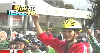 穿起牛仔褲、一身輕便裝扮的周美青,南下來到嘉義和偏遠地區(qū)的小朋友來趟自行車之旅,跨上自行車,她的身手可把不少身邊的人都比了下去。