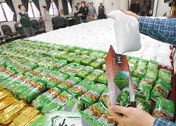 調查人員見狀立即上前將人、車扣留,并上船搜索,隨即在漁船前艙發(fā)現一密室,打開發(fā)現成堆K他命,分裝在茶葉、食品、飼料等不同產品袋子中,企圖魚目混珠。經清查后共有K他命成品八百四十七公斤,估計黑市價格高達十億元,是島內最大宗K他命走私案。