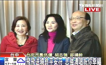 中新網(wǎng)1月29日電 據(jù)臺灣TVBS報道,帽子天后鳳飛飛為了明天演唱會,29日下午提前到臺中和市長胡志強、市長夫人邵曉鈴進(jìn)行一場敘舊茶會。