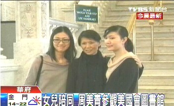為了云門的歡迎酒會,周美青還特地?fù)Q上了黑色長裙套裝,兩個女兒馬唯中、馬元中也從紐約趕到華府陪母親,在這個正式的場合,馬家姐妹也以正式套裝美美亮相,馬唯中和媽媽一樣一身黑,馬元中則是穿上了淺咖啡色小洋裝。
