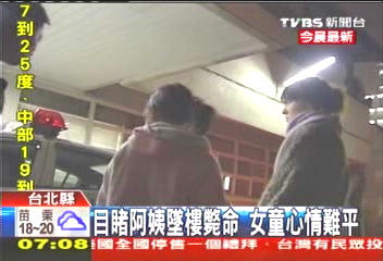 中新網(wǎng)2月1日電 據(jù)臺(tái)灣tvbs報(bào)道,31日晚間,臺(tái)北市傳出墜樓意外事件!一名林姓女子因忘記帶鑰匙,想爬窗從陽(yáng)臺(tái)開(kāi)門(mén),卻失足從4樓的摔下,當(dāng)時(shí)陪在一邊的小妹妹目擊整個(gè)過(guò)程,嚇到不愿意再回想這段恐怖的經(jīng)驗(yàn)。