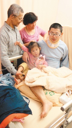 中新網(wǎng)3月3日電 據(jù)臺灣《聯(lián)合報》報道,孝子扛家計,卻因惡性腫瘤住院經(jīng)濟斷炊。新竹縣28歲的葉棟耀從高中時天天凌晨4點起床送報,現(xiàn)在則白天當保全員,晚上與身障妻子賣口香糖,養(yǎng)活父母和女兒一家6口,日前卻罹患惡性骨腫瘤住院,下半身恐癱瘓,父母老淚縱橫“這么孝順的孩子,怎么這么歹運!”