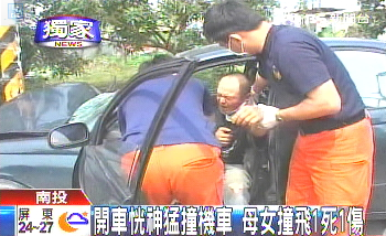 中新網(wǎng)3月4日電 據(jù)臺(tái)灣TVBS報(bào)道,南投縣草屯今天發(fā)生一起死亡車(chē)禍,轎車(chē)駕駛疑似恍神,直接撞上騎摩托車(chē)雙載的母女,車(chē)被撞飛了10米遠(yuǎn),坐在后座的媽媽雖然有戴安全帽,但因?yàn)樗は萝?chē)時(shí),被轎車(chē)撞上頭部,當(dāng)場(chǎng)傷重不治。