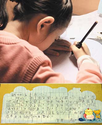“親愛的美青阿姨:您好,我是高紫萱,麗湖小學(xué)三年級(jí)。我們天使心每年都有一個(gè)音樂會(huì),可以邀請(qǐng)能幫助我們的人來參加,今年爸爸說我們可以試試馬(英九)夫人,雖然我不懂,也不認(rèn)識(shí)您,但是我相信您一定是個(gè)重要的人,希望您能來聽我們的音樂會(huì)。紫萱敬上”。