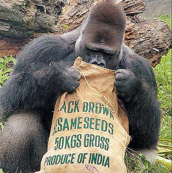資料顯示,公成年金剛猩猩背上有象征年長(zhǎng)的銀白長(zhǎng)毛,有人稱之“銀背”。性情溫和、重視家庭,生氣時(shí)會(huì)搥胸吼叫。幼年期的搥胸動(dòng)作多為表達(dá)滿足之意,成年時(shí)的搥胸意義復(fù)雜,有時(shí)用來(lái)警告入侵者。
