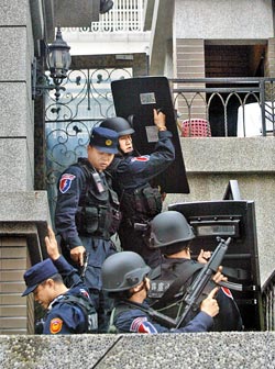 維安特勤隊(duì)是警界的精英組成,目前全臺(tái)共有一百三十名成員,“警政署長(zhǎng)”王卓鈞已于昨深夜批準(zhǔn),今天派出四十人進(jìn)駐臺(tái)中市;這批精銳部隊(duì)配備重武器,包括沖鋒槍、狙擊槍等,對(duì)黑道暴力犯罪具有壓制能力。