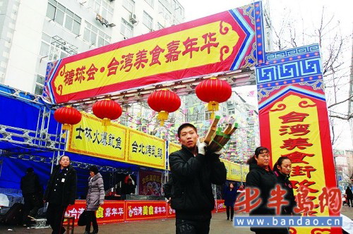 中新網(wǎng)3月5日電 據(jù)青島市臺辦網(wǎng)站消息,3月1日,第21屆糖球會在青島海云庵正式拉開大幕,30萬人首日熱逛糖球會。在靠近糖球廣場的蒙化路專門辟出一條臺灣美食街,久負(fù)盛名的臺北士林夜市的20余種臺灣美食慕名前來趕會。此次參會的臺灣美食很多原料都是專門從臺灣運(yùn)來的。其中將在上海世博會臺灣館中參展的“度小月?lián)忻妗焙汀膀伦屑濉币铂F(xiàn)身糖球會,市民在家門口就可品嘗到這兩種“世博美食”。