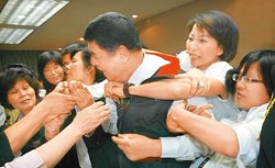 中新網(wǎng)5月11日電 據(jù)臺灣《中國時報》報道,臺“立法院”昨天(10日)首度針對開放陸生來臺、承認大陸學(xué)歷進行“有官員答詢”的委員會初審,一整天大小沖突不斷。朝野“立委”先為了臺“教育部長”吳清基請假不到吵架,下午又為延長開會時間潑水沖突。最后主席張慶忠在偷藏麥克風(fēng)、拉扯、捂嘴的沖突中宣布完成“兩岸人民關(guān)系條例”修正草案初審。