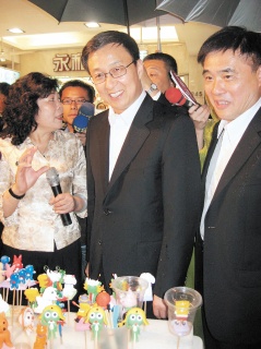 可能是晚宴都還沒消化,韓正來到夜市并未品嘗任何小吃,只有喝了一小杯茶葉攤商的奉茶,夜市內(nèi)一家藝品店老板戴忠泉送給韓正一只石刻作品,象征“時(shí)時(shí)好運(yùn)、節(jié)節(jié)高升”,郝龍斌在旁強(qiáng)調(diào)“臺(tái)北市民就是這么熱情”,韓正笑著回應(yīng)說:“全都感受到了!”