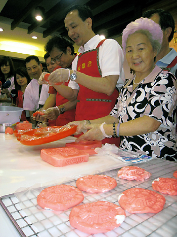 中新網(wǎng)6月22日電 據(jù)“中央社”報(bào)道,國(guó)民黨新北市長(zhǎng)參選人朱立倫22日到汐止市百年紅龜粿店,與75歲的劉余銀奶奶一起做紅龜粿,朱立倫毫不生疏、架勢(shì)十足,讓老奶奶猛稱贊,并給了他90分的高分。