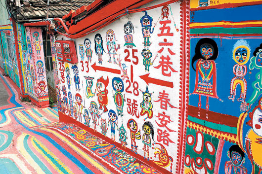 位于臺(tái)中嶺東科技大學(xué)后方的“彩虹眷村”,真正名稱是“干城六村”,不過(guò)整個(gè)眷村大部分都已經(jīng)拆除,只剩下一小部分眷村房舍仍然存在著,整個(gè)地區(qū)彌漫著過(guò)去眷村那種雞犬相聞的親密空間感,以及可能是源于眷村即將拆除的不確定感。