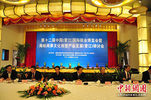中新網(wǎng)晉江4月19日電(沈靜)依托第十二屆中國(晉江)國際鞋業(yè)博覽會(huì)舉辦的盛大平臺(tái),結(jié)合“打好臺(tái)牌”的亮點(diǎn),第十二屆中國(晉江)國際鞋業(yè)博覽會(huì)暨海峽兩岸文化創(chuàng)意產(chǎn)業(yè)發(fā)展(晉江)研討會(huì)于今日舉行。